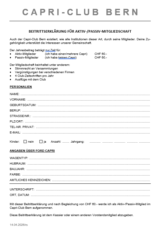 Antrag auf Mitgliedschaft